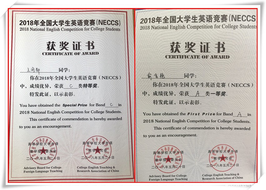 我校学生在2018年全国大学生英语竞赛中喜获佳绩
