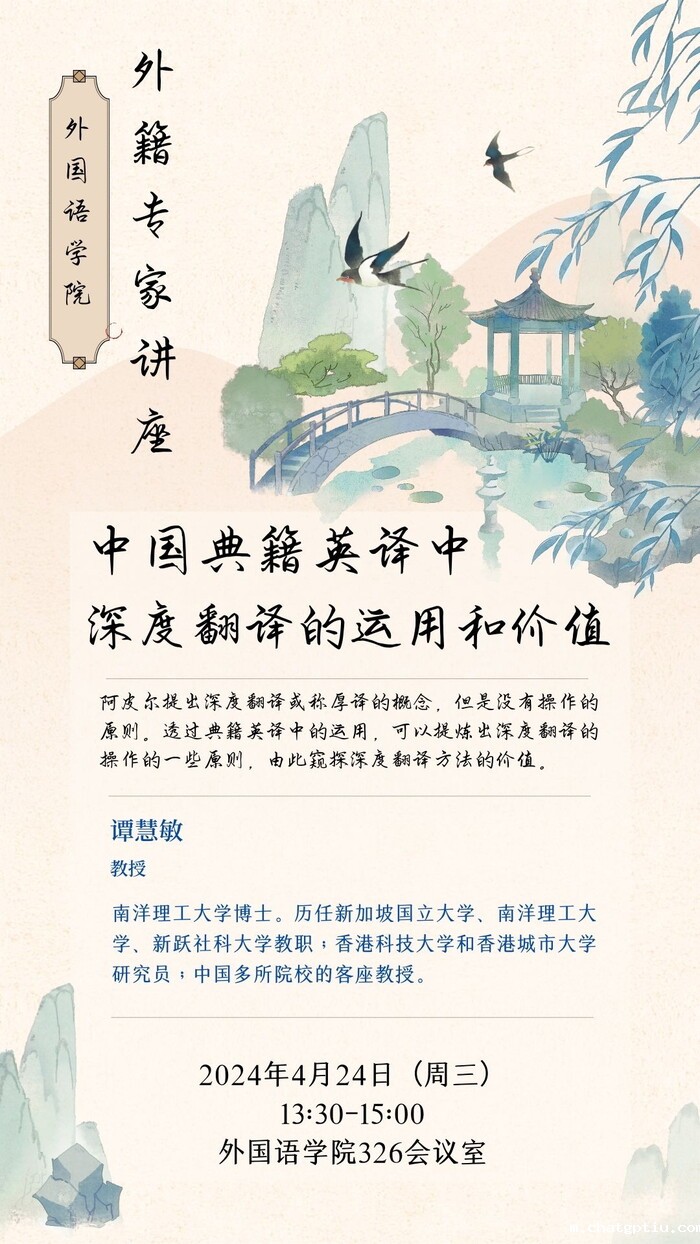 外籍专家讲座:中国典籍英译中深度翻译的运用和价值