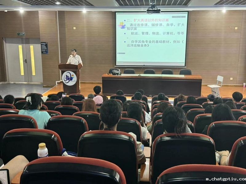 Professor Wang Dawei said that in the era of AI, students should study harder, seize opportunities, strive to improve their English level, do the work that artificial intelligence cannot complete, and avoid the idea of lying flat in their minds and relying too much on artificial intelligence. He pointed out that as foreign language talents in the new era, foreign language alone is not enough. Students need to expand their knowledge and accumulate knowledge in the fields of economics, mathematics, law and computer through minor courses, auditing and self-study. He emphasized the unique characteristics of the Maritime University - the shipping field, pointing out that the advantage of the maritime university is in the shipping field, maritime characteristics is a trump card of our school, if you can combine foreign languages and shipping, you will make great achievements in the future.