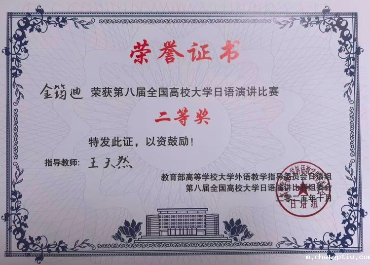 日前,第八届全国高校大学日语演讲比赛在大连举行,我校翻译专业23级金筠迪同学获二等奖。